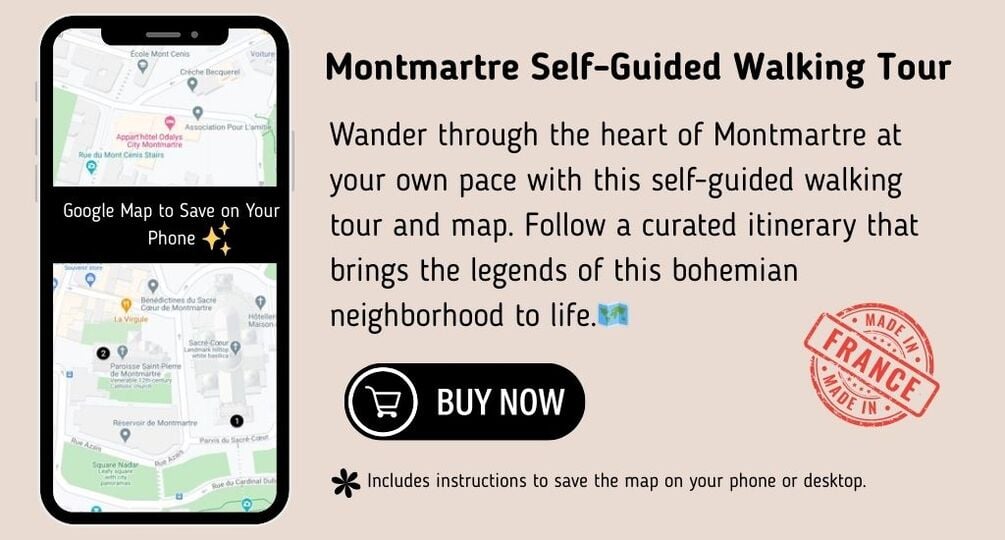 Wander through the heart of Montmartre at your own pace with this self-guided walking tour and map. Follow a curated itinerary that brings the legends of this bohemian neighborhood to life, and navigate effortlessly with a Google Map you can download to your phone.